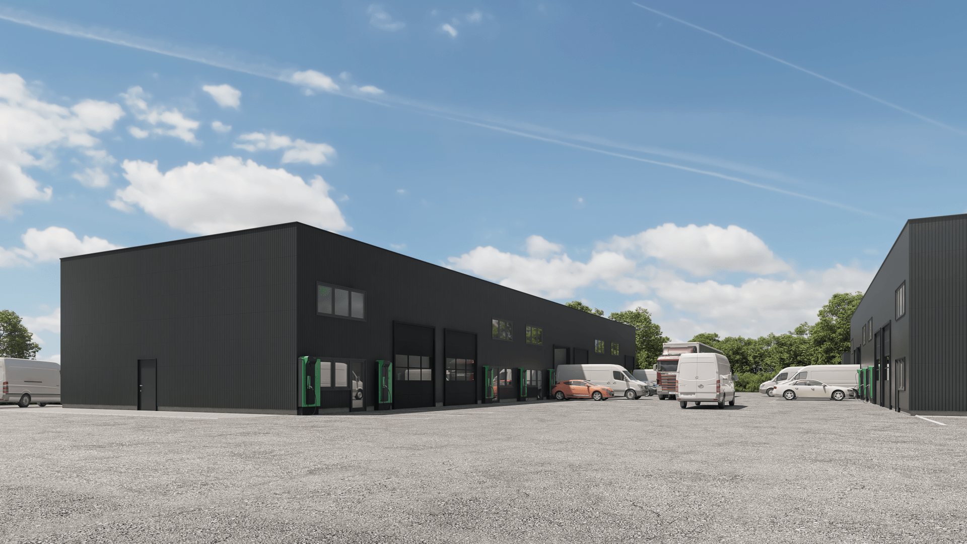 Jede Gewerbeeinheit verfügt über zwei Parkplätze und ist mit einer 22 kw E-Ladestation ausgestattet, die vorzugsweise über die eigene Photovoltaikanlage gespeist wird. Die bauseitige Anbindung über Glasfasernetz für schnellste Verbindungen sind ebenso Standard wie das Öffnen und Schließen aller Türen und Tore über individuell anpassbare Codeschlösser.