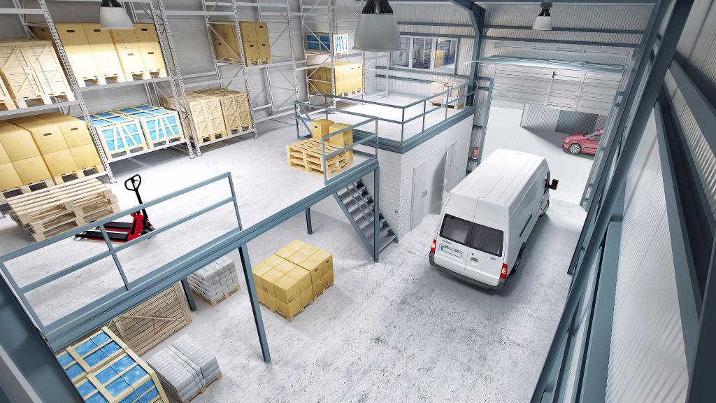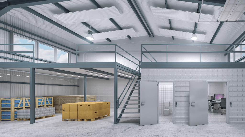 Über der Officeeinheit befindet sich eine Lagerbühne, die auf Wunsch auf bis zu 70m² erweitert werden kann. Optional kann über der Officeeinheit auch noch ein Pausenraum, ebenfalls mit kleiner Küche und Toilette im Obergeschoss erstellt und gemietet werden.
